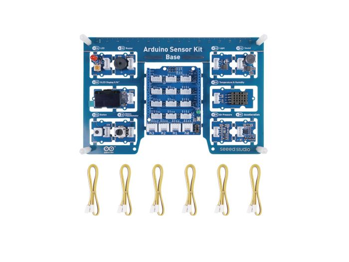 | Short Description | De Arduino Sensor Kit Base is een complete startkit voor beginners die willen leren hoe je sensoren en actuatoren gebruikt met een Arduino-board. Deze kit is een samenwerking tussen Arduino en Seeed Studio en combineert 10 veelgebruikte Grove-modules met een Base Shield-printplaat, waardoor je zonder solderen, breadboard of losse bedrading meteen aan de slag kunt. |
