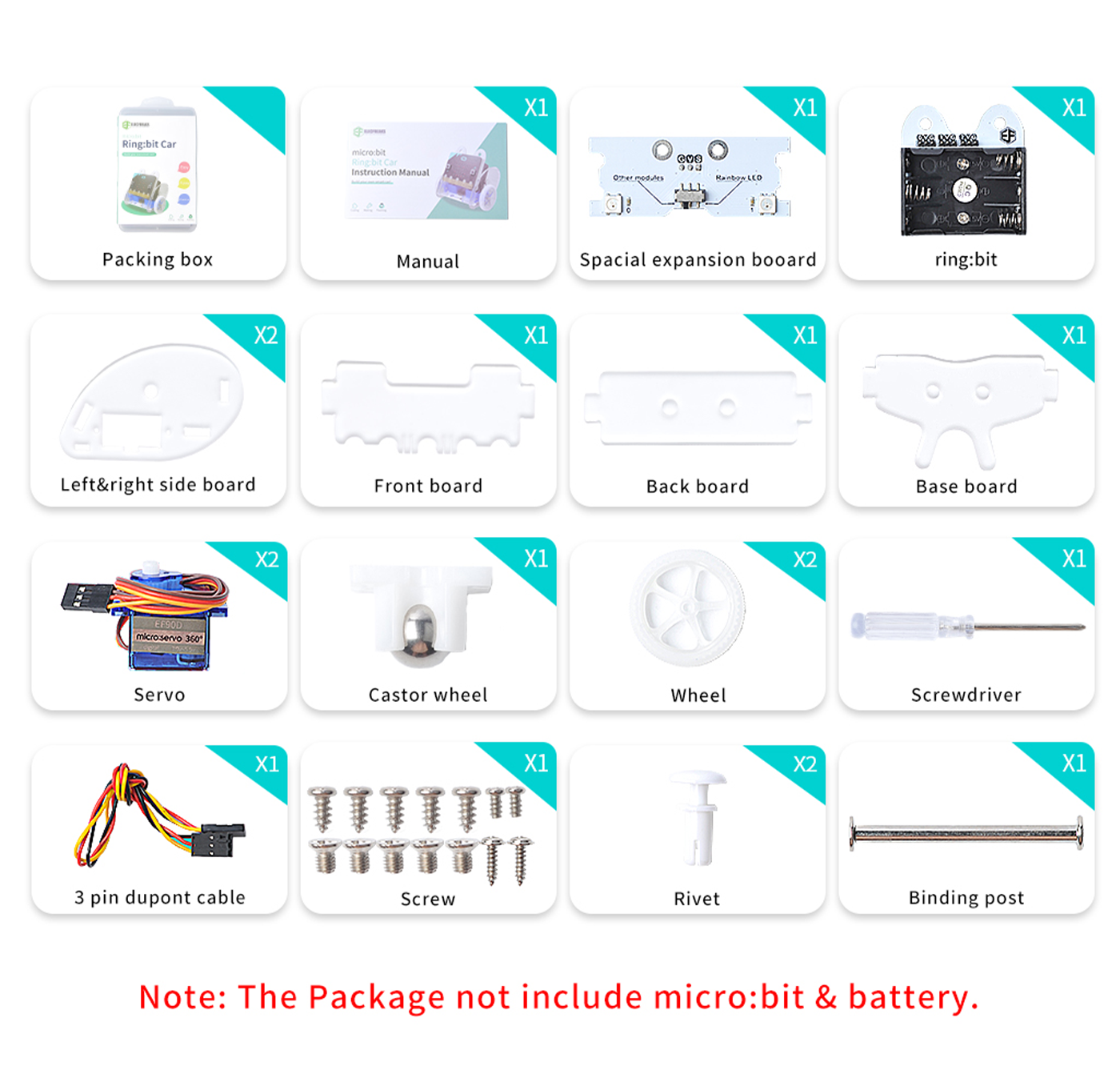 | Short Description | De ELECFREAKS Ring:bit Kit V2 micro auto is een kleine slimme doe-het-zelf micro auto aangedreven door de BBC micro:bit en de ELECFREAKS Ring:bit. Een standaard Ring:bit micro-auto kan eenvoudig worden geprogrammeerd om autonoom te rijden, met afstandsbediening, en zelfs regenbooglichtbakens te creëren. |