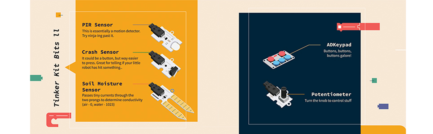 Short Description | ElecFreaks Micro: bit Tinker Kit (zonder Micro: bit Board) is een set accessoires voor micro: bit, waarmee je allerlei modules eenvoudig kunt aansluiten. |