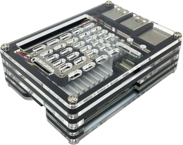 Geef je Raspberry Pi een stijlvolle én beschermende upgrade met deze hoogwaardige transparante acryl behuizing. Dankzij het heldere design blijft alle elektronica zichtbaar, terwijl je Raspberry Pi 5 optimaal wordt beschermd tegen stof en lichte beschadigingen.